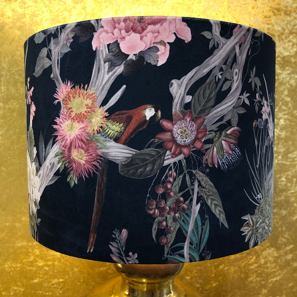 Bespoke Velvet Lampshade & Cushion, Peacock Blossom - Black