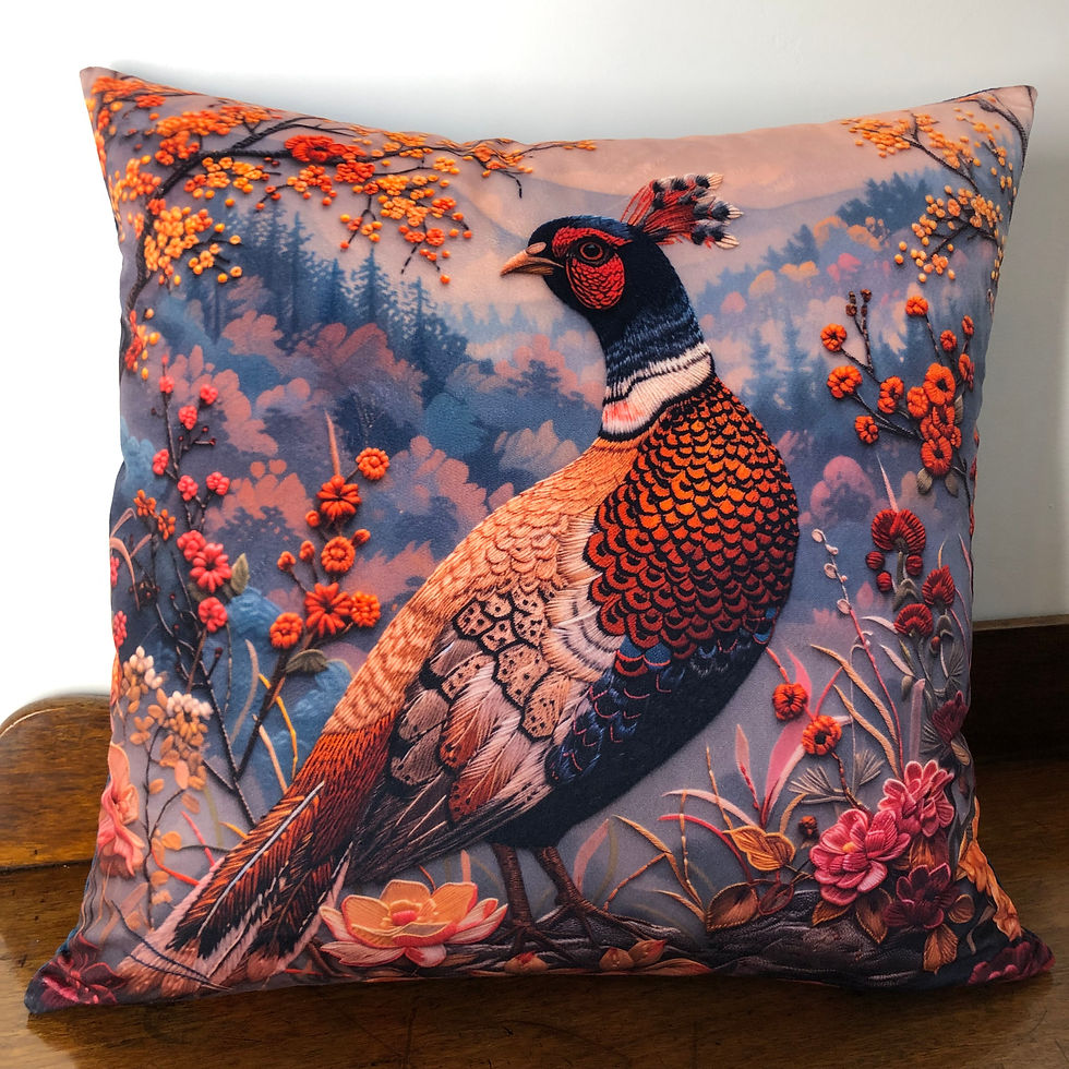 Luxury Velvet Cushion: Majestic Painted Peacock